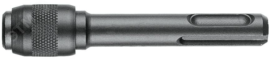Универсальный держатель для битов с шестигранным хвостовиком 1/4'' по стандарту DIN ISO 1173-C 6,3. С быстрозажимным патроном для моментальной смены битов. Привод - хвостовик SDS plus.
