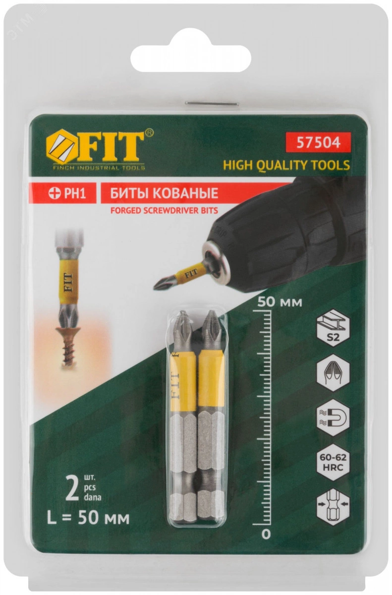 Биты кованые сталь S2 односторонние 50 мм PH1 Профи 2 шт блистер