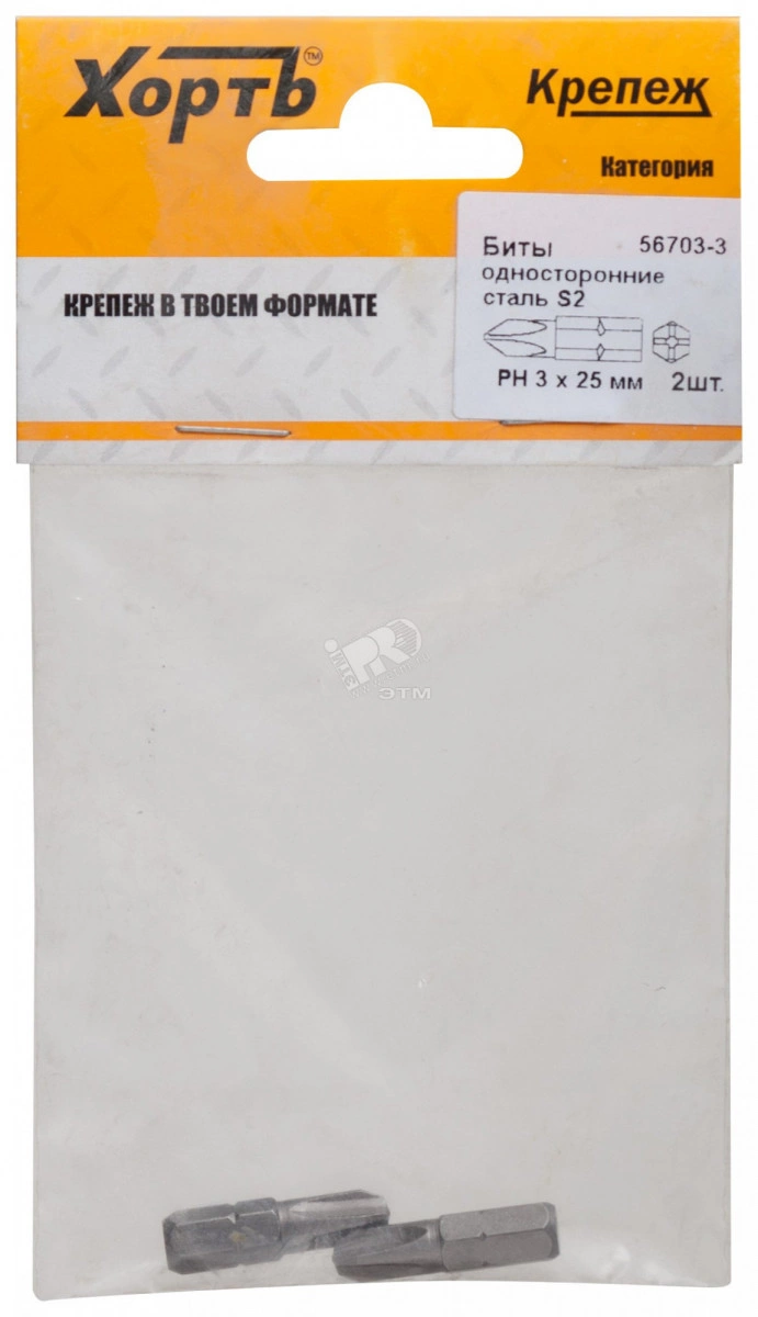 Биты односторонние сталь S2, РН 3 х 25 мм 2 шт