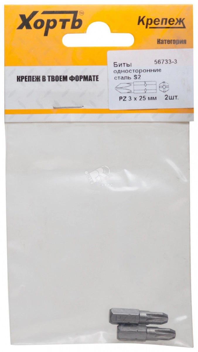 Биты односторонние сталь S2, РZ 3 х 25 мм 2 шт