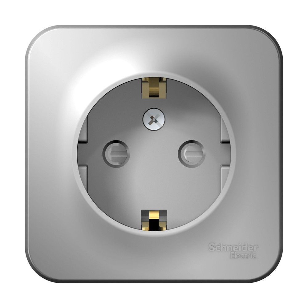 Розетка Systeme Electric (ранее Schneider Electric) BLANCA (алюминий, открытой установки) одноместная, с заземлением и шторками предназначена для сетей до 250В, на ток до 16А. Шторки открываются только при одновременном равномерном давлении в оба отверстия и препятствуют проникновению посторонних предметов. Они обеспечат дополнительную безопасность в доме, где есть дети.