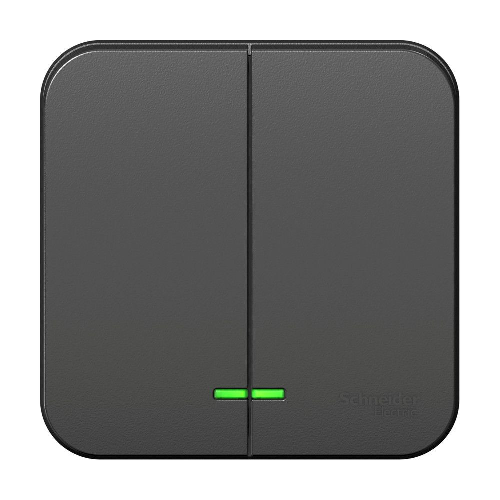 Выключатель Systeme Electric (ранее Schneider Electric) BLANCA (антрацит, открытой установки) двухклавишный предназначен для сетей до 250В, на ток до 10А. Подсветка делает его легко находимым в отсутствие освещения. Двухклавишный выключатель позволяет управлять двумя источниками света из одной точки.