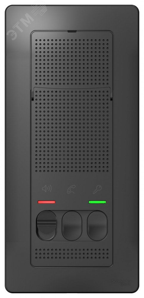 Устройство Systeme Electric (ранее Schneider Electric) BLANCA (цвет – антрацит) переговорное настенного монтажа предназначено для домофонных систем, питается от батарейки (3 элемента питания ААА х 1,5В). Громкость устройства регулируется, нанесены символы ''Звук'' и ''Разговор''. Размеры устройства - 187*84*25 мм.