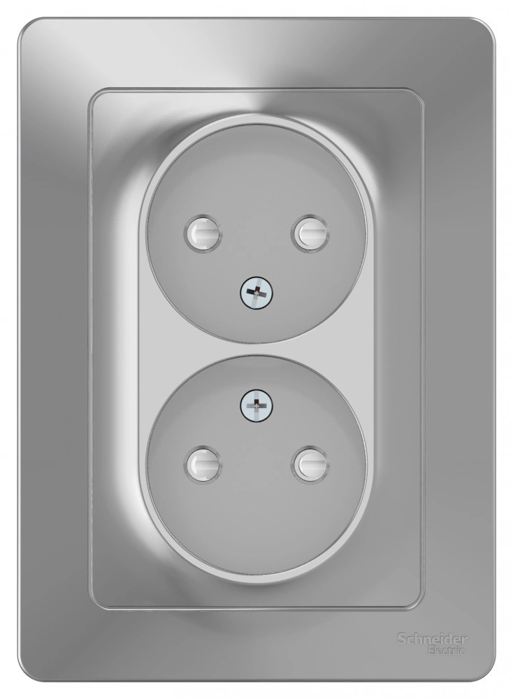 Розетка Schneider Electric BLANCA (алюминий, скрытой установки) двухместная, без заземления, со шторками предназначена для сетей до 250В, на ток до 16А. Двухместная розетка позволяет подключить два устройства в одном месте. Шторки обеспечат дополнительную безопасность в помещении, где находятся дети.