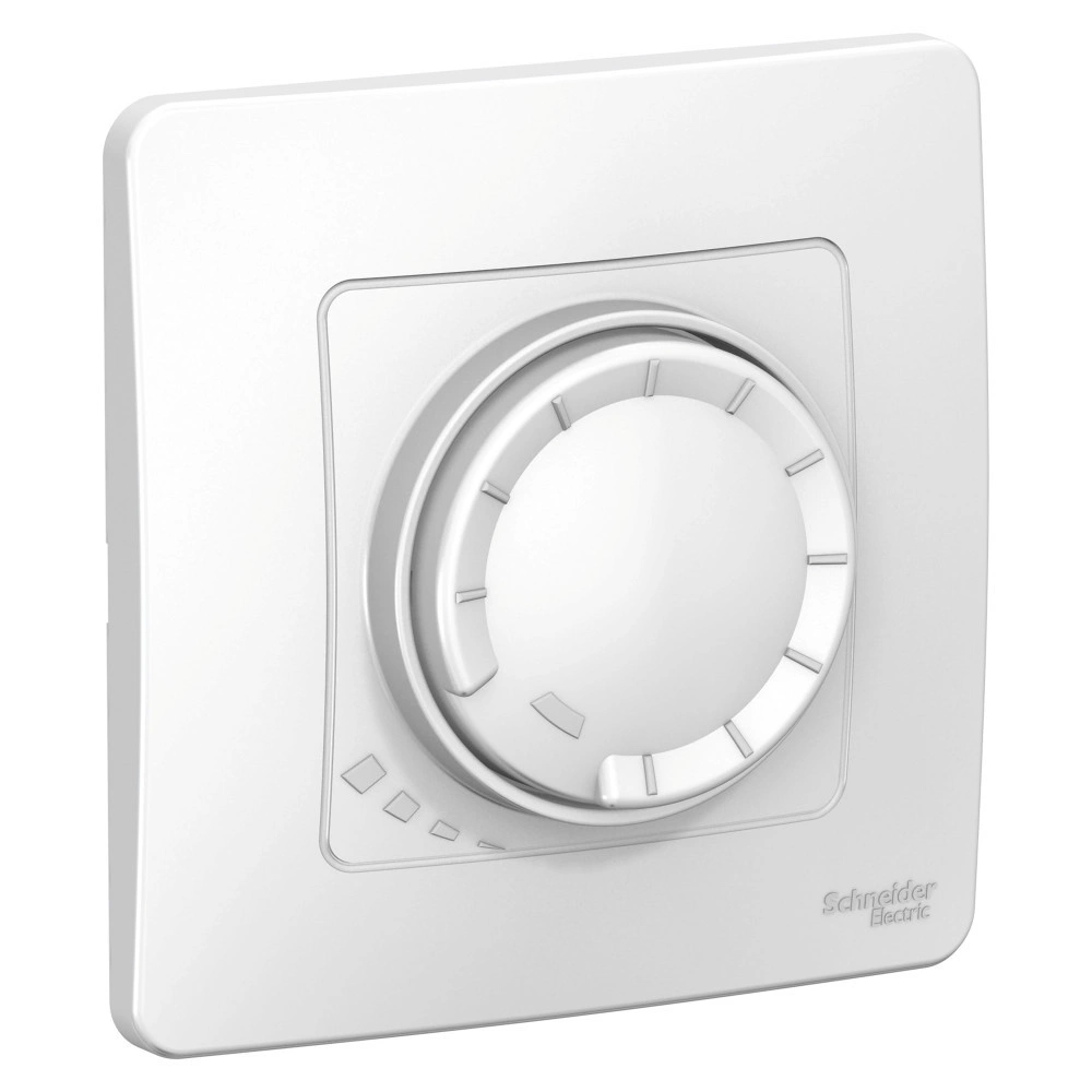 Светорегулятор (диммер) Schneider Electric BLANCA (белый, скрытой установки) поворотно-нажимной универсальный предназначен для сетей 230В, потребление 5-150Вт для светодиодных ламп и 10-400Вт для ламп накаливания и галогенных. Диммер изготовлен из ABS-пластика, прост в установке и удобен в применении.