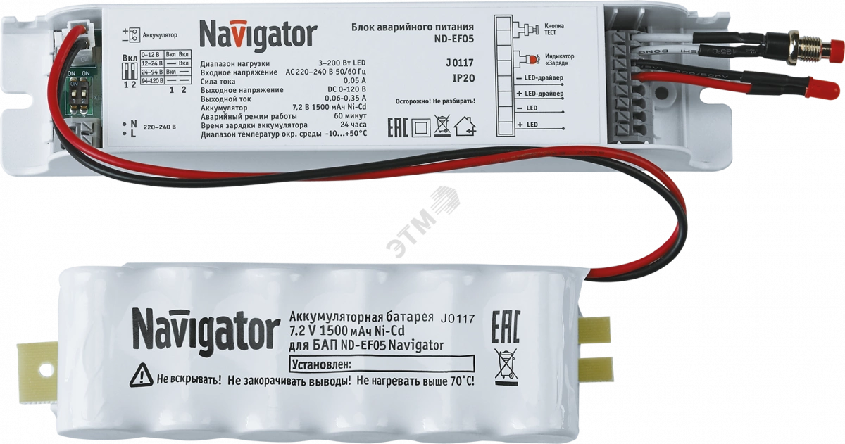 Блоки аварийного питания для светодиодных светильников Navigator серии ND-EF предназначены для включения и поддержания работы светильника в случае аварийного отключения питания электросети. Защита от перезаряда и полного разряда аккумулятора продлевает срок его службы.