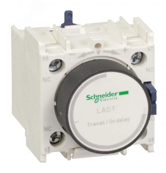 Дополнительный контактный блок TeSys D Shneider Electric (1НО+1НЗ), с выдержкой времени 0,1-3 с, тип крепления - винтовые зажимы.
