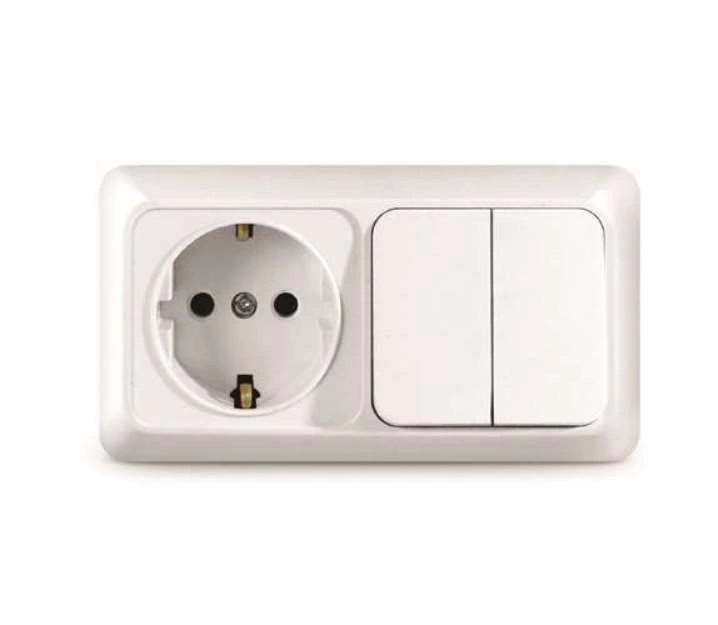 Корпус представляет собой форму из пластика, белого цвета. Контактная группа изделий изготовлена из латуни. Монтируется горизонтально, на глубину 48 мм, на поверхность стены. Рекомендованы для жилых помещений и административных зданий.