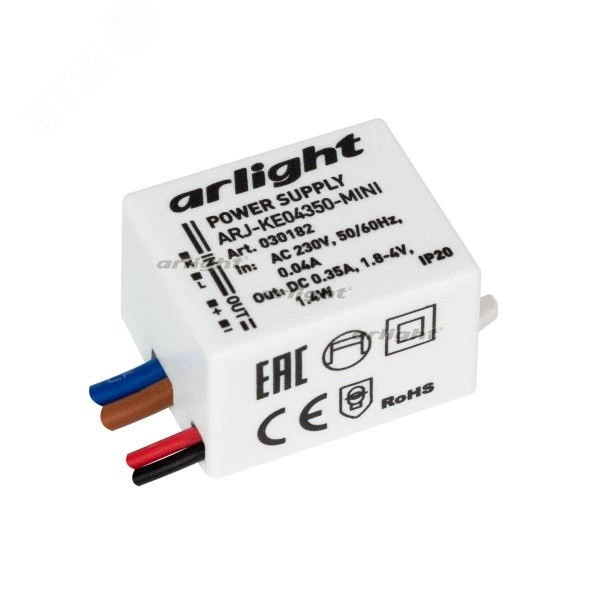 Блок питания ARJ-KE04350-MINI (1.4W, 350mA) (ARL, IP20 Пластик, 5 лет)