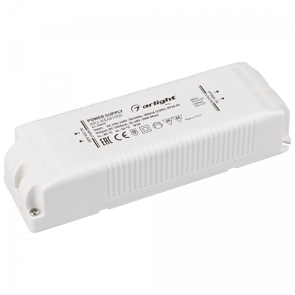 Блок питания ARJ-KE481050 (50W, 1050mA, PFC) (ARL, IP20 Пластик, 5 лет)