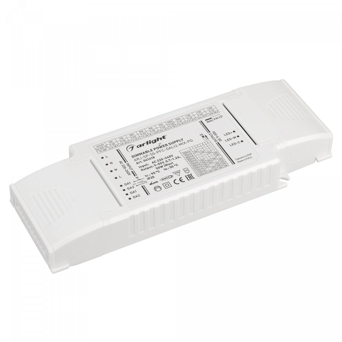 Блок питания ARJ-SP-50-PFC-DALI2-MIX-PD (50W, 9-55V, 0.7-1.2А) (Arlight, IP20 Пластик, 5 лет)