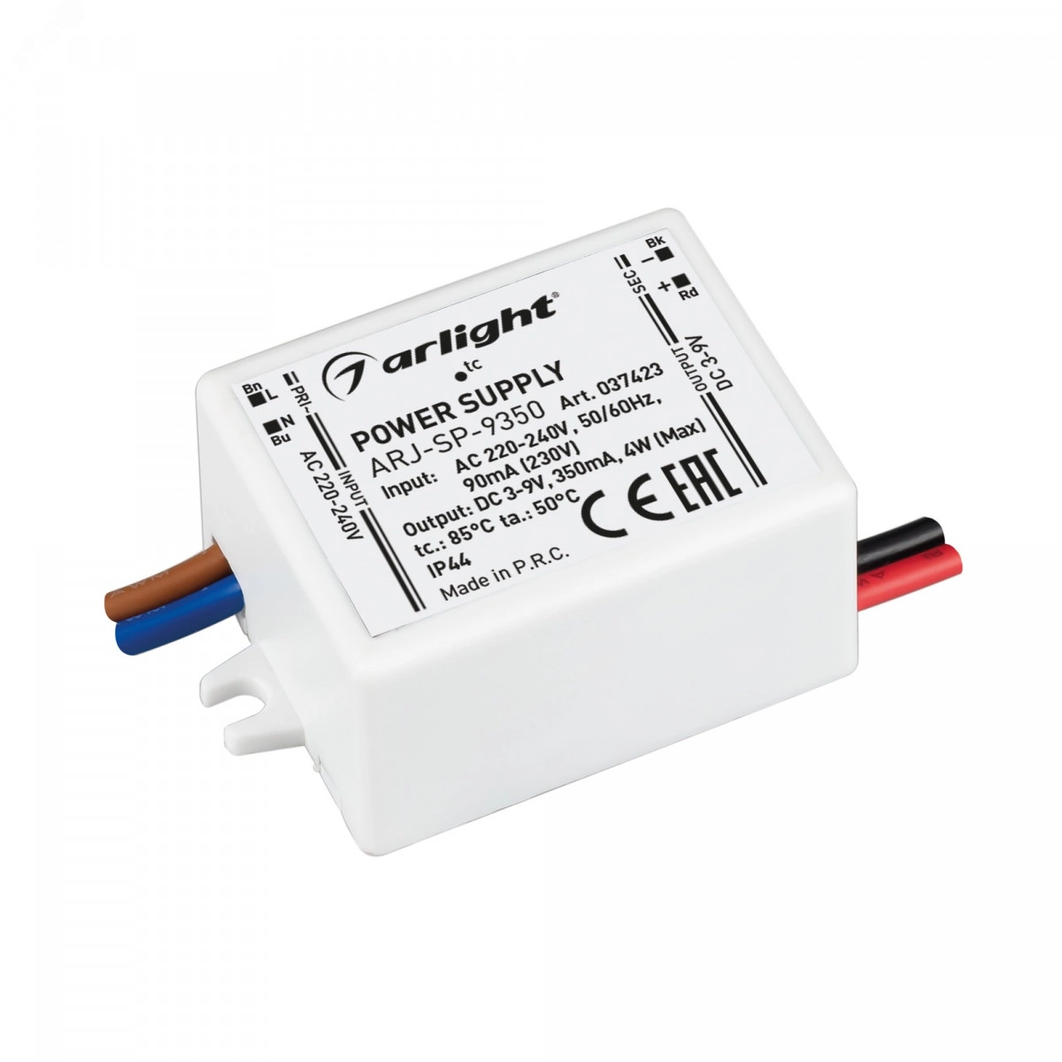Полное описание: Блок питания ARJ-SP-9350 (4W, 3-9V, 350mA) (Arlight, IP20 Пластик, 5 лет)