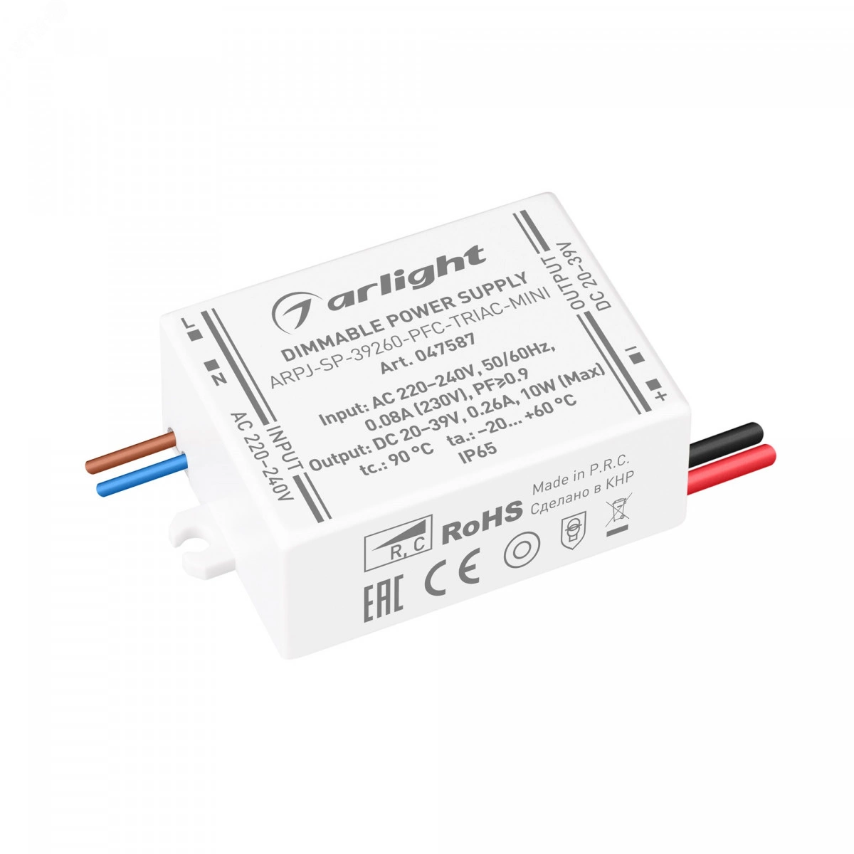 Блок питания ARPJ-SP-39260-PFC-TRIAC-MINI (10W, 20-39V, 260mA) (Arlight, IP65 Пластик, 5 лет)