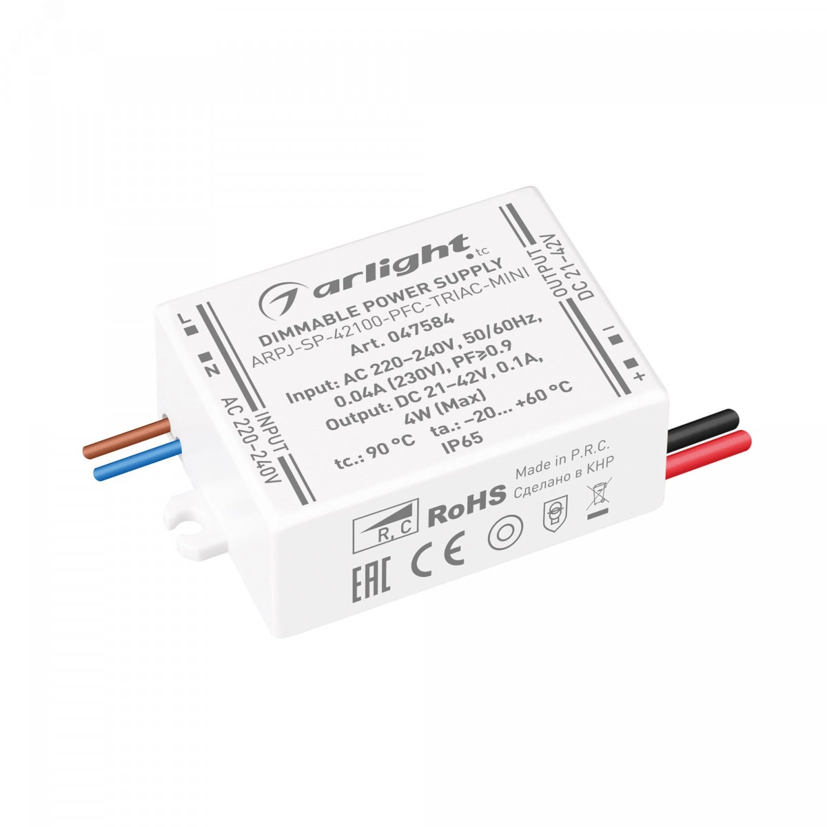 Блок питания ARPJ-SP-42100-PFC-TRIAC-MINI (4W, 21-42V, 100mA) (Arlight, IP65 Пластик, 5 лет)