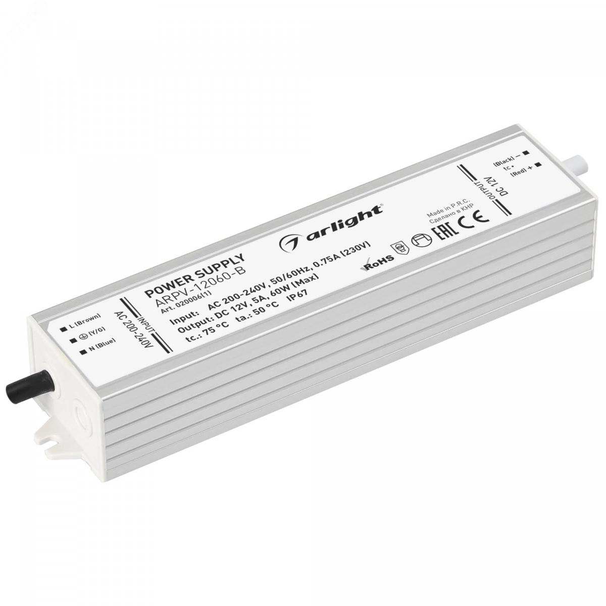 Блок питания ARPV-12060-B (12V, 5.0A, 60W) (Arlight, IP67 Металл, 3 года)