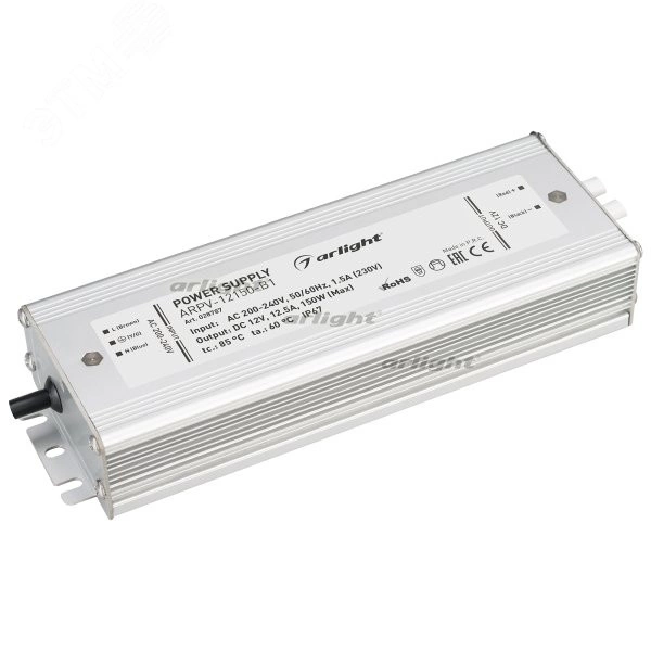 Блок питания ARPV-12150-B1 (12V, 12,5A, 150W) (ARL, IP67 Металл, 3 года)