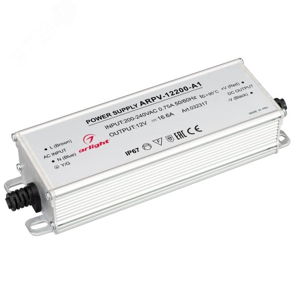 Блок питания ARPV-12200-A1 (12V, 16.6A, 200W) (Arlight, IP67 Металл, 3 года)