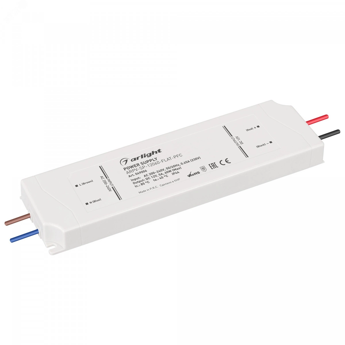 Блок питания ARPV-SP-12060-FLAT-PFC (12V, 5A, 60W) (Arlight, IP44 Пластик, 5 лет)