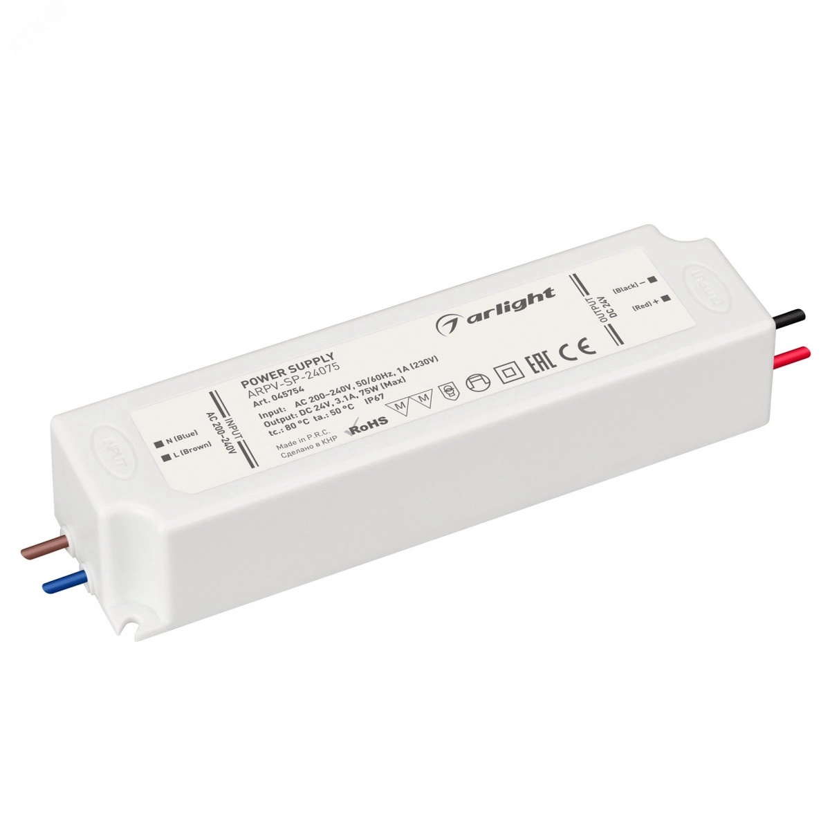 Блок питания ARPV-SP-24075 (24V, 3.1A, 75W) (Arlight, IP67 Пластик, 5 лет)