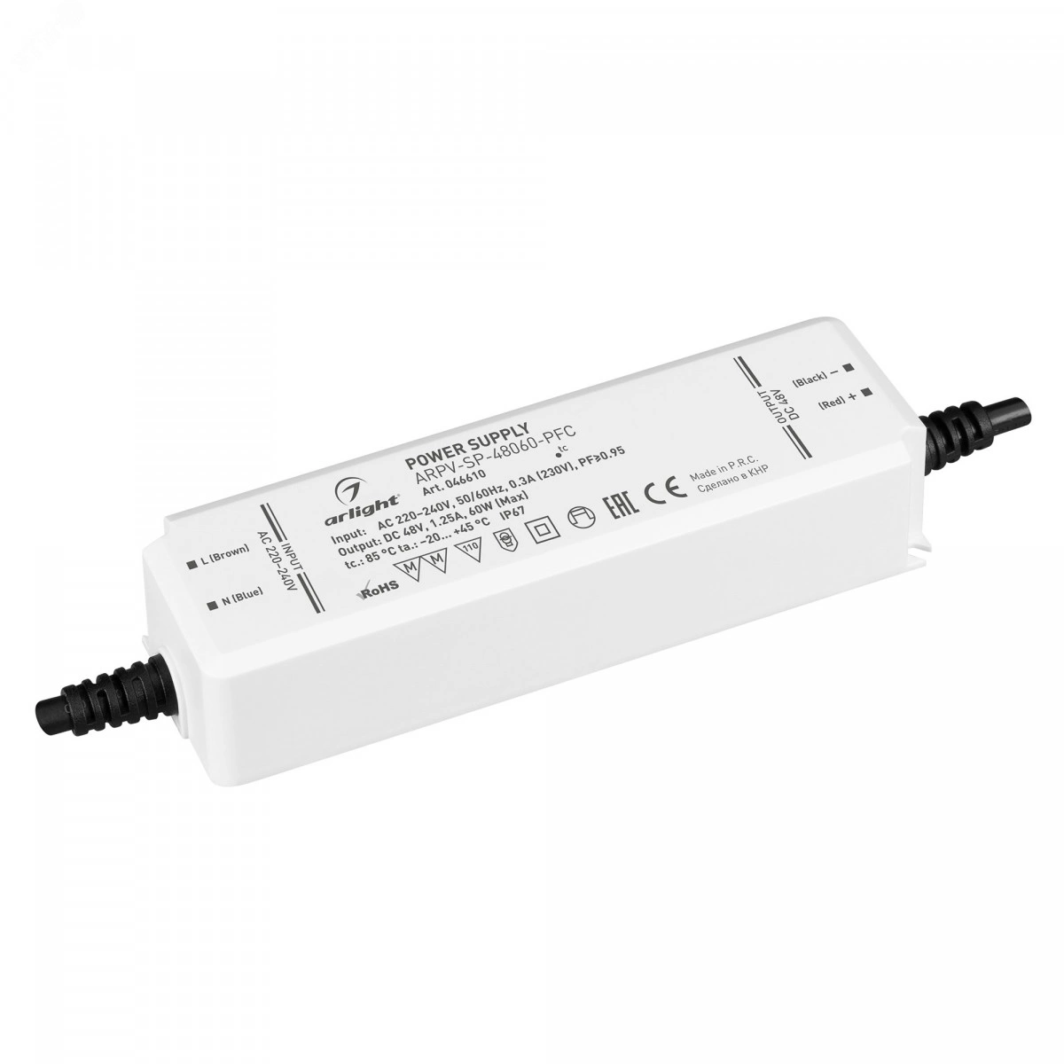Блок питания ARPV-SP-48060-PFC (48V, 1.25A, 60W) (Arlight, IP67 Пластик, 5 лет)