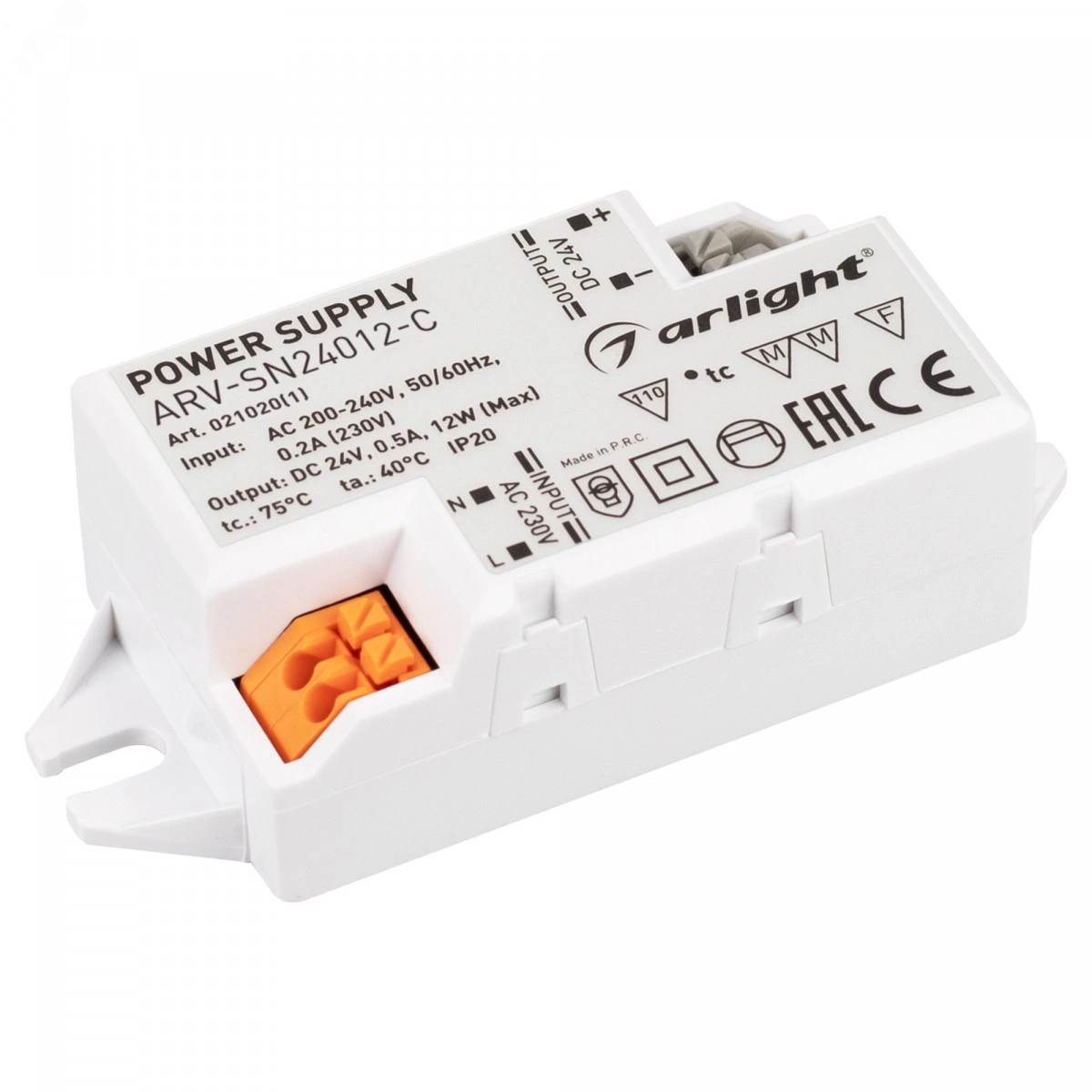 Блок питания ARV-SN24012-C (24V, 0.5A, 12W) (ARL, IP20 Пластик, 3 года)