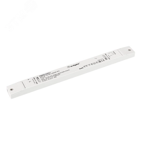 Источник напряжения с гальванической развязкой для светодиодных изделий. Входное напряжение 220-240 VAC. Выходные параметры - 24 В, 4.17 А, 100 Вт. Встроенный PFC >0.9. Тонкий пластиковый корпус IP 20. Габаритные размеры длина 350 мм, ширина 30 мм, высота 18 мм. Гарантийный срок 5 лет.