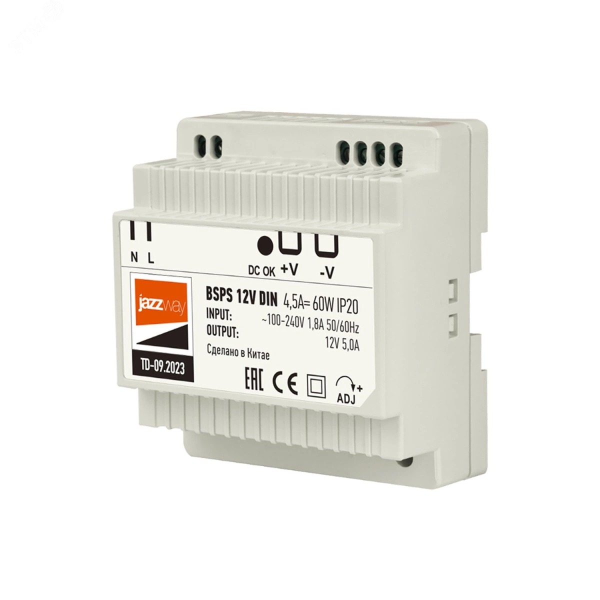 Блок питания (драйвер) на DIN-рейку для светодиодной ленты 60Вт 12В IP20 3г.гар Jazzway
