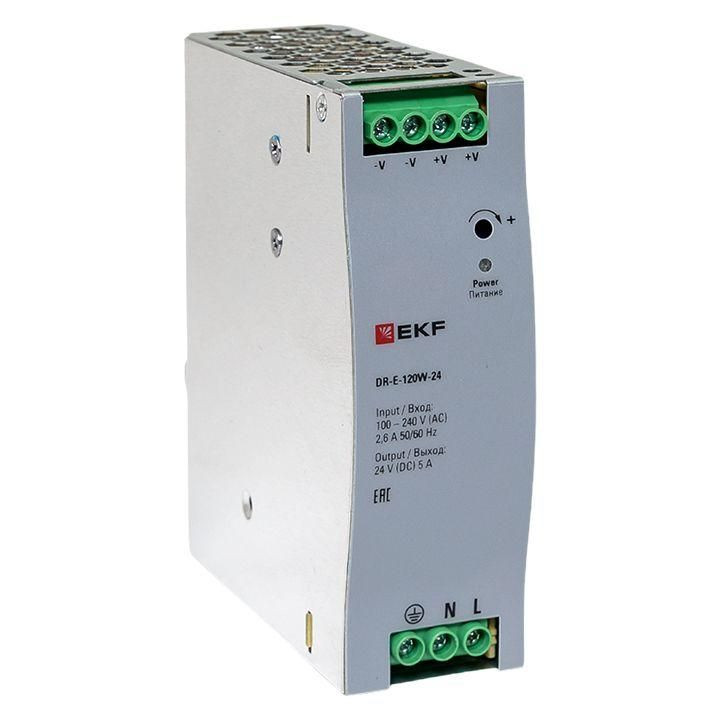 Полное описание: Блок питания на DIN-рейку 120Вт Uвх ~ 220В AC Uвых - 24В DC постоянного тока EKF DR-E-120W-24