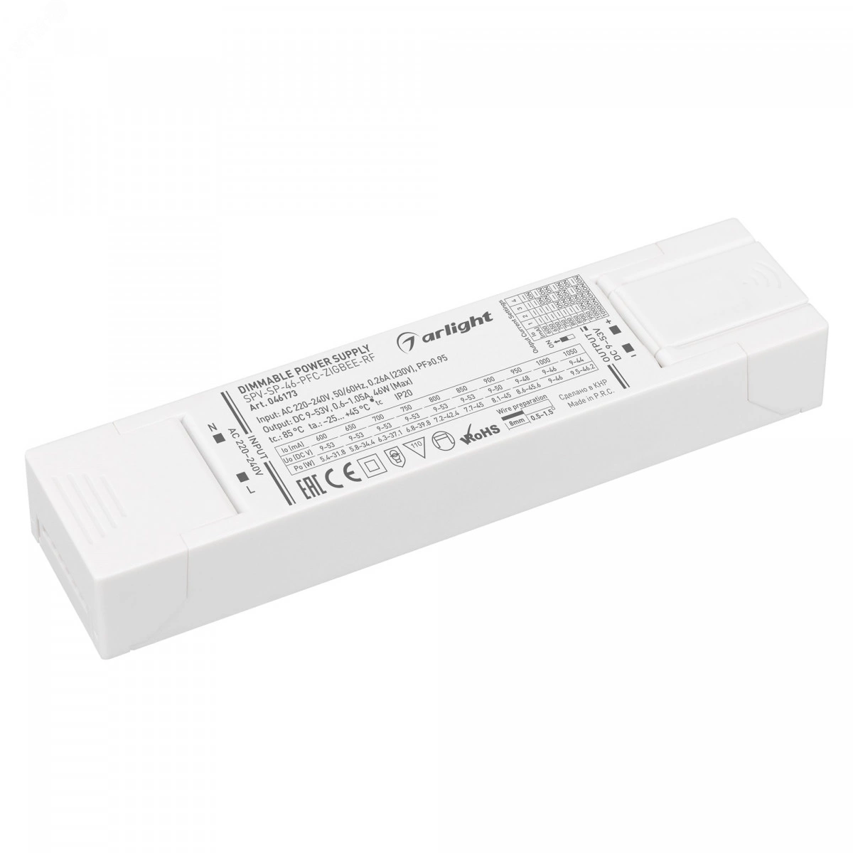 Блок питания SPV-SP-46-PFC-ZIGBEE-RF (46W, 9-53V, 0.6-1.05A, 2.4GHz) (Arlight, IP20 Пластик, 5 лет)