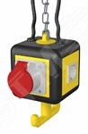 Укомплектованный блок питания с ручкой, крючком и 4 платами. Комплектация: с 3 одинарными розетками с защитным контактом 16 A/250 В, с защитными шторками, с соединением на 1 цепь переменного тока, подключение через одну 3-полюсную клемму, с 1 розеткой CEE 16 A/415 В, с разделительной перегородкой для разделения цепей тока.