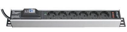 Блок распределения питания 6-м 16А Schuko вх. разъем Schuko для 19дюйм шкафов с 1п авт. выкл. выкл. защита от перенапряж. с индикатором сети DKC R5VSH6CBCD