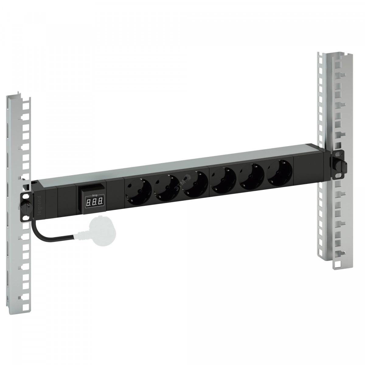 Блок распределения питания (PDU) - 6 розеток 2К+3 - немецкий стандарт - амперметр - шнур питания 3м - 19' - 16А