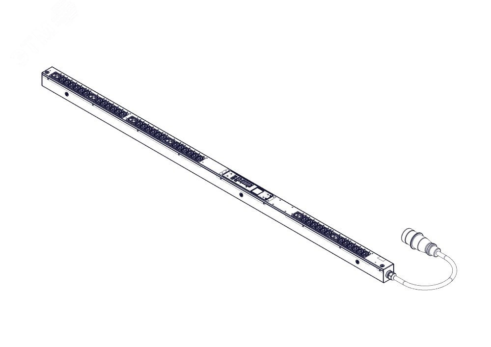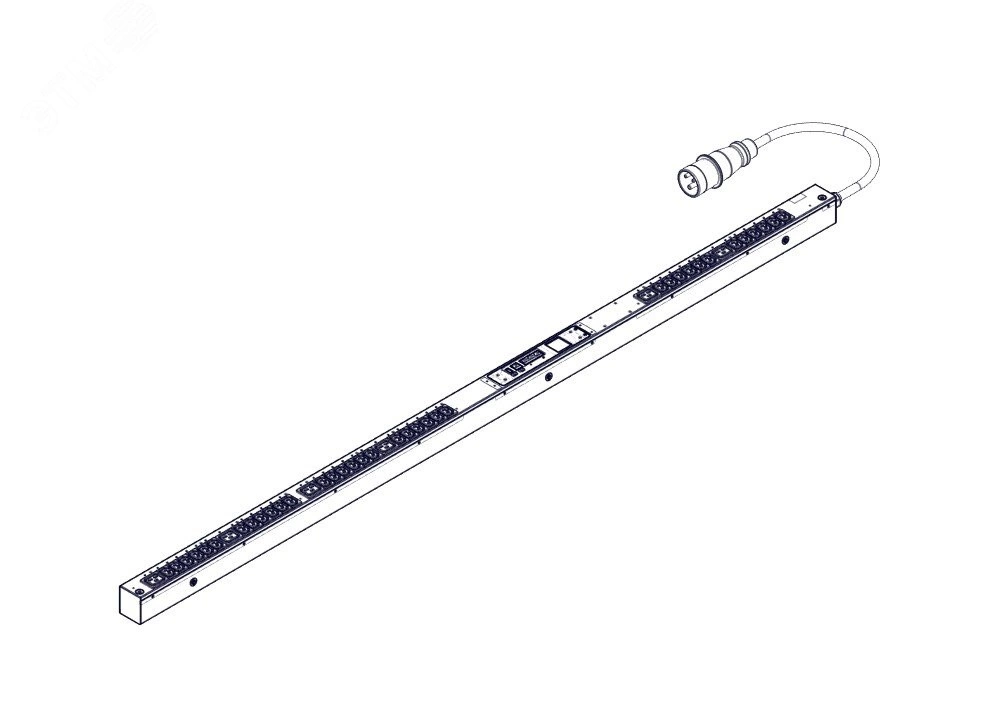 Стоечный блок распределения питания промышленного назначения, управляемый, серия Uniprom, 0U, 400В, 3Ф, 16A, 36xC13 6xC19, 3м кабель, IEC309