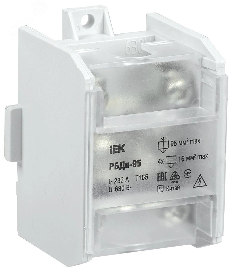 Блок распределительный проходной РБДп-95 232/100А DIN 1х95-4х16мм2