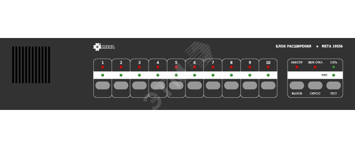 Блок расширения МЕТА 19556 (БР) предназначен для расширения возможностей блока связи МЕТА 19555 по количеству подключаемых абонентских устройств (АУ). Блок предназначен для установки в 19-дюймовый шкаф.