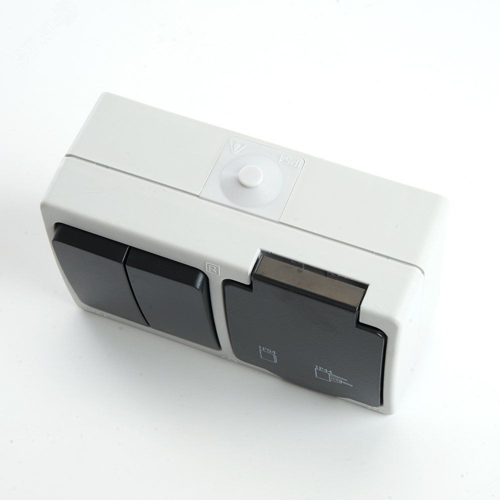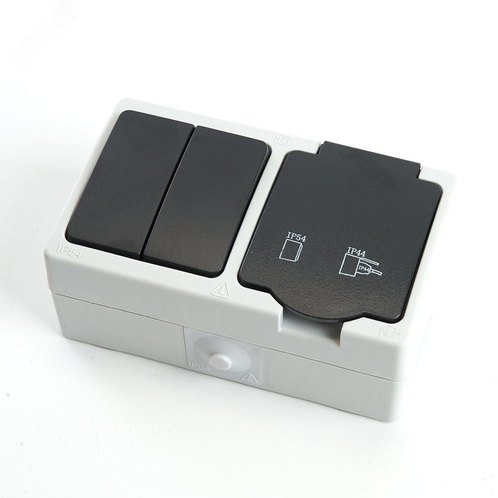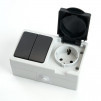 Блок розетка 1-местная с/з + выключатель 2-клавишный, серый/графит,
