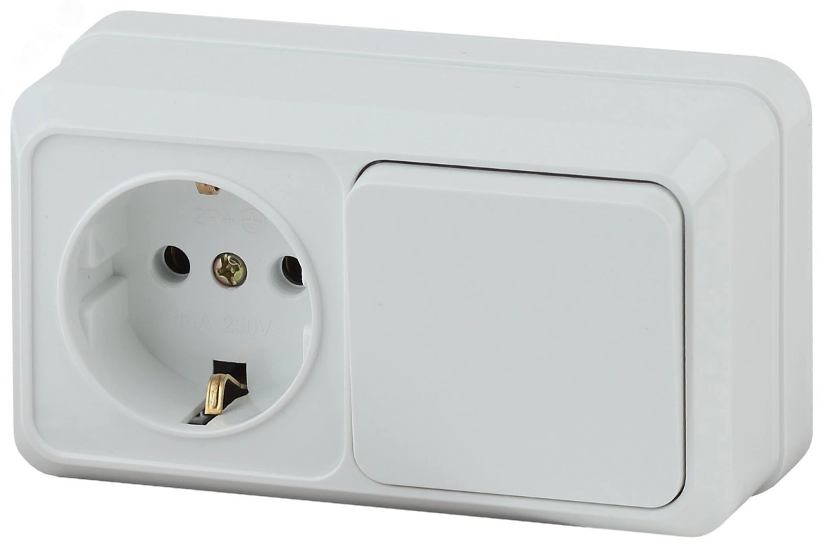 Блок розетка с выключателем горизонтальный серии Intro Quadro открытой установки цвет белый 2-701-01. Номинальные характеристики 10(16)А-250В. Устройство выполнено из термопласта, керамики, стали и латуни, оснащёно винтовыми зажимами.