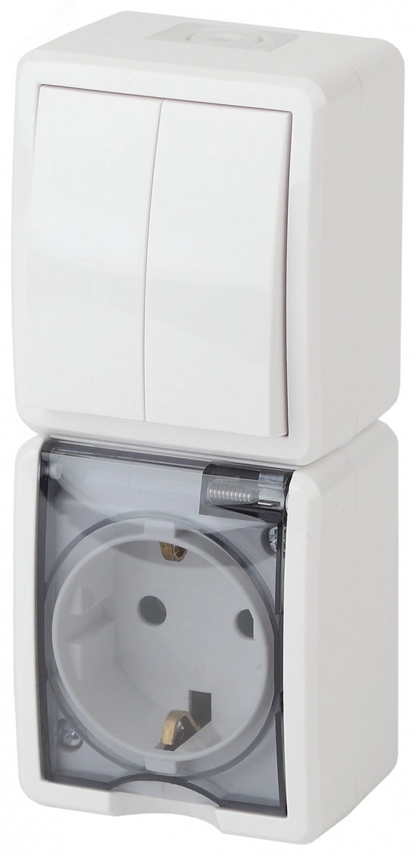 Блок розетка+выкл. двойн. верт. IP54, 16A(10AX)-250В, ОУ, Эра Эксперт, белый, 11-7408-01