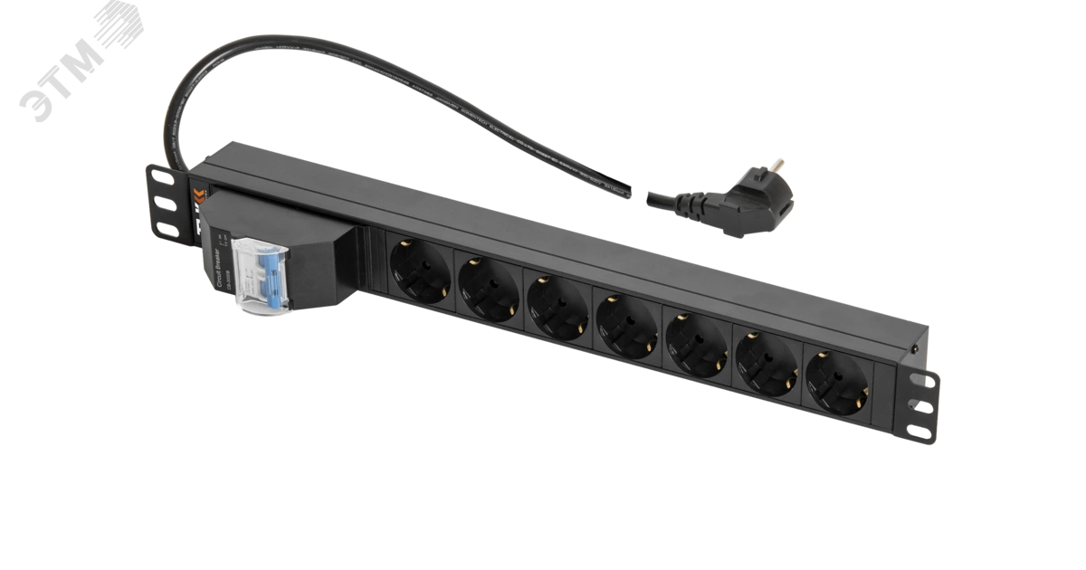 Блок розеток 19д 7 гнезд ''евророзетка'' 16A двухполюсный автомат 16А шнур питания 2 метра ''евровилка'' сечение 3*15 мм2 металлический корпус защита от детей макс. мощность 4000 Вт 490*44.4*44.4 мм