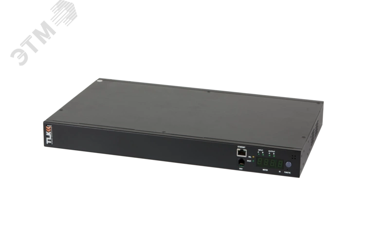 Блок розеток 19д AT - ATS Автоматическое переключение питания между вводными линиями включение и отключение каждой розетки измерение потребления каждой розетки и отправка показаний через LAN 10 розеток C13 макс. нагрузка 16 А Счетчик электроэнер