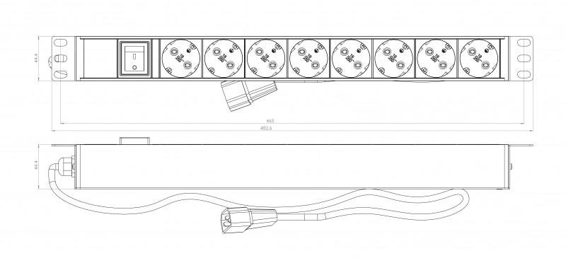 Блок розеток 8-м 10А SHE19-8SH-S-2.5IEC горизонт. шнур 2.5м Hyperline 397035