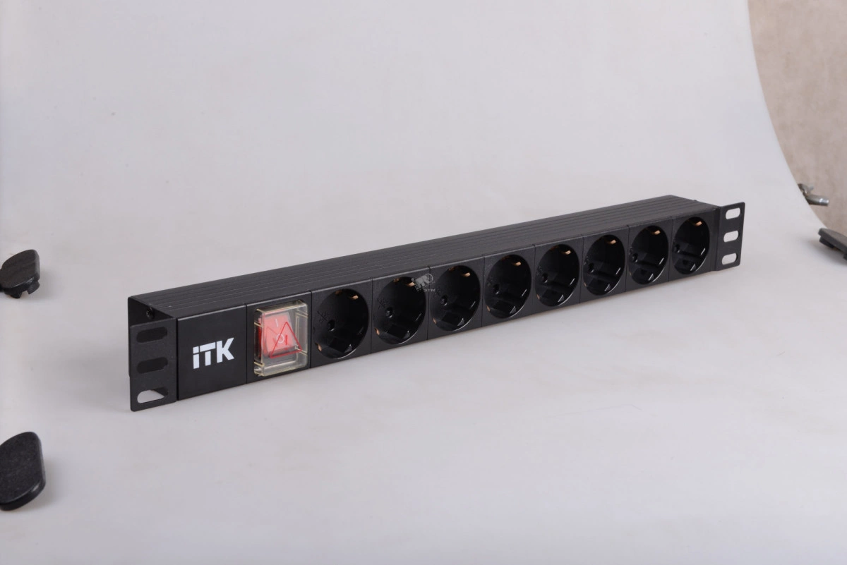 Горизонтальные 19' PDU от ITK прекрасно справляются с задачей по электроснабжению сетевого оборудования в шкафах и стойках, а также с требованием защиты от токов короткого замыкания и перенапряжения. Изготавливаются блоки розеток из высококачественных термостойких материалов и пластмасс, оснащаются в зависимости от модели выключателем со светоиндикацией, автоматом УЗО, кнопкой сброса при перенапряжении и соответствуют российским и международным стандартам качества. Горизонтальные PDU соответствуют стандарту 19' (482,6 мм) и устанавливаются с помощью кронштейнов на 19' профиль, при этом положение кронштейнов можно менять.