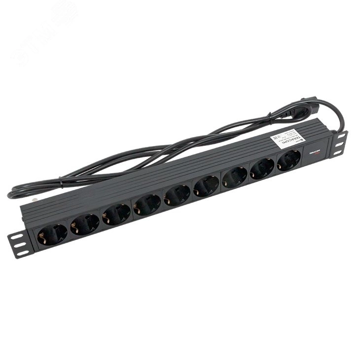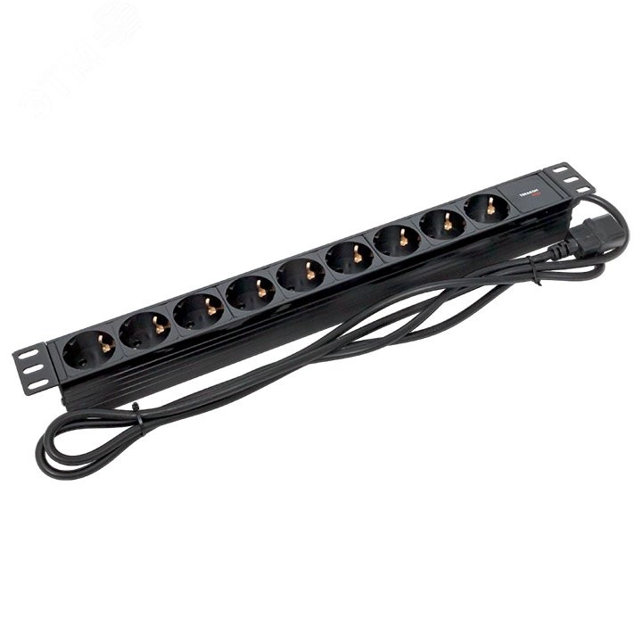 Блок розеток PDU TERACOM PRO 19' 1U 10А/250В 9 роз. Schuko шнур 2 м 3x1.5 мм2 вилка C14 корпус пластик черный