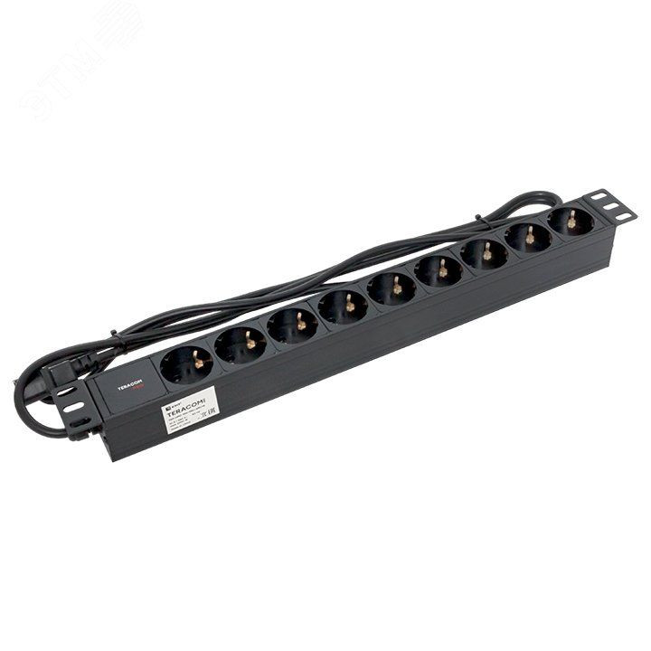Блок розеток PDU TERACOM PRO 19' 1U 10А/250В 9 роз. Schuko шнур 2 м 3x1.5 мм2 вилка C14 корпус алюминий черный