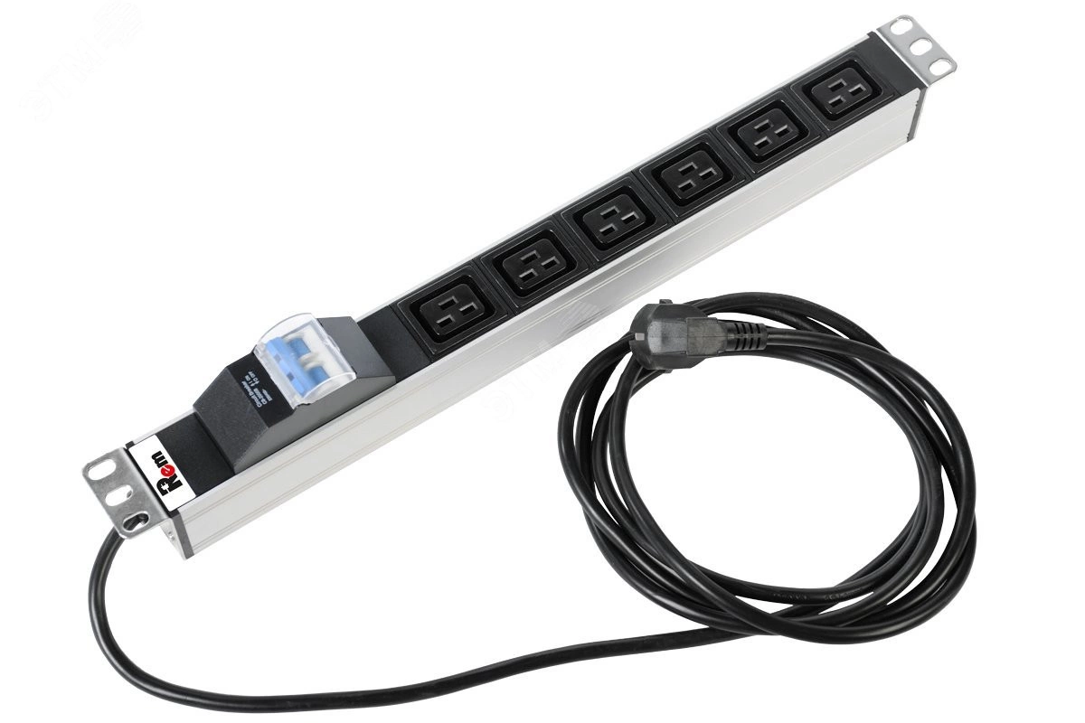 Блок силовых розеток имеет шесть портов стандарта IEC 60320 C19, выполнен в анодированном алюминиевом корпусе. Блок имеет автомат защиты 16А. Кабель питания 3 метра. Совместим со всеми линейками 19' монтажного оборудования. Поставляется в индивидуальной упаковке с комплектом крепежа. Выполнен в системе несущих конструкций 482,6 мм по ГОСТ 28601.2 (19-дюймовые конструктивы по МЭК 297).