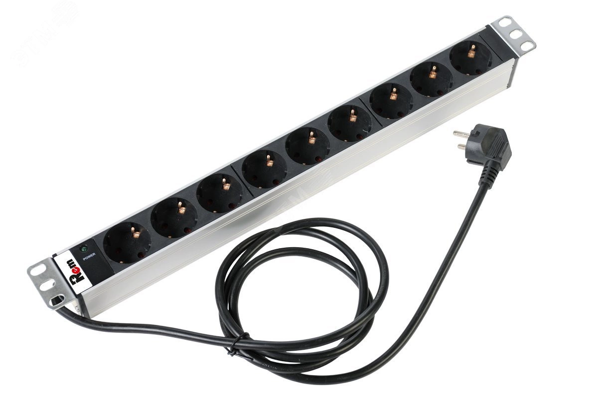 Блок силовых розеток имеет девять портов стандарта Schuko, выполнен в анодированном алюминиевом корпусе. Розетки расположены под углом 45%, для удобного подсоединения коленчатых штекеров. На лицевой части блока установлен индикатор питания. Кабель питания 1.8 метра. Совместим со всеми линейками 19' монтажного оборудования. Поставляется в индивидуальной упаковке с комплектом крепежа. Выполнен в системе несущих конструкций 482,6 мм по ГОСТ 28601.2 (19-дюймовые конструктивы по МЭК 297).