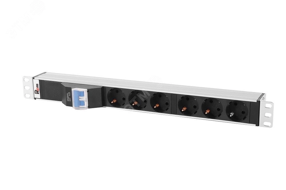 Блок силовых розеток имеет шесть портов стандарта Schuko, выполнен в анодированном алюминиевом корпусе. Розетки расположены горизонтально, для удобного подсоединения коленчатых штекеров. На лицевой части блока установлен автомат. Вход кабеля питания - клемная колодка. Кабель питания в комплект поставки не входит. Совместим со всеми линейками 19' монтажного оборудования. Поставляется в индивидуальной упаковке с комплектом крепежа. Выполнен в системе несущих конструкций 482,6 мм по ГОСТ 28601.2 (19-дюймовые конструктивы по МЭК 297).