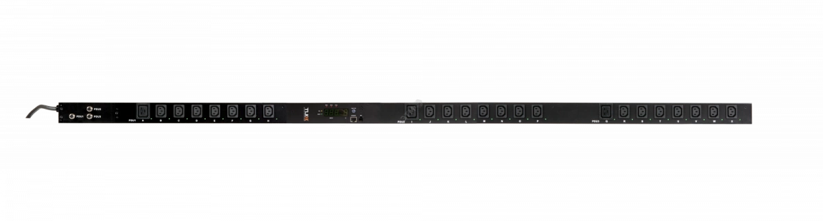Блок розеток TLK SW - Switched Вертикальный 21 розеток C13 3 розетки С19 макс. нагрузка 32 А шнур питания 3 м. Вилка 1-фазная 32А 250В IEC 60309 Защита 16А цифровое измерение силы тока на входе металлический корпус макс. мощность 8000 Вт 1778*4