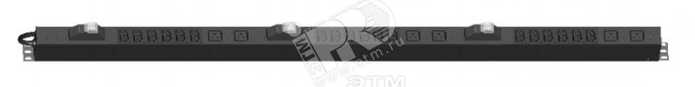 Блок розеток трехфазный вертикальный 3 блока по 6хIEC60320 С13+2хIEC60320 С19+АВ 32А кабель 5х6 (3м) с вилкой черный