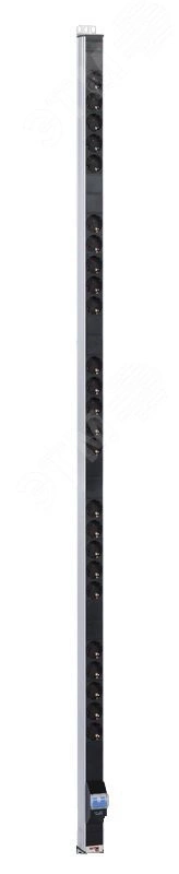 Блок силовых розеток имеет двадцать пять портов стандарта Schuko, выполнен в анодированном алюминиевом корпусе. Розетки расположены под углом 45%, для удобного подсоединения коленчатых штекеров. Блок имеет автомат защиты 16А. Для подключения внешнего шнура (кабеля) предусмотрена клеммная колодка под провод номинальным сечением до 2,5 мм2. Блок предназначен для установки в шкафы 42-48U. Поставляется в индивидуальной упаковке с комплектом крепежа.